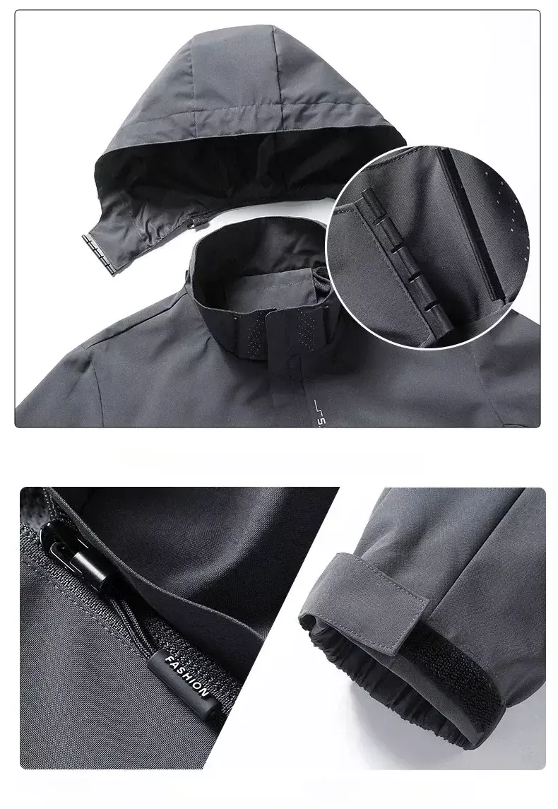 • Capuz ajustável e zíper reforçado
